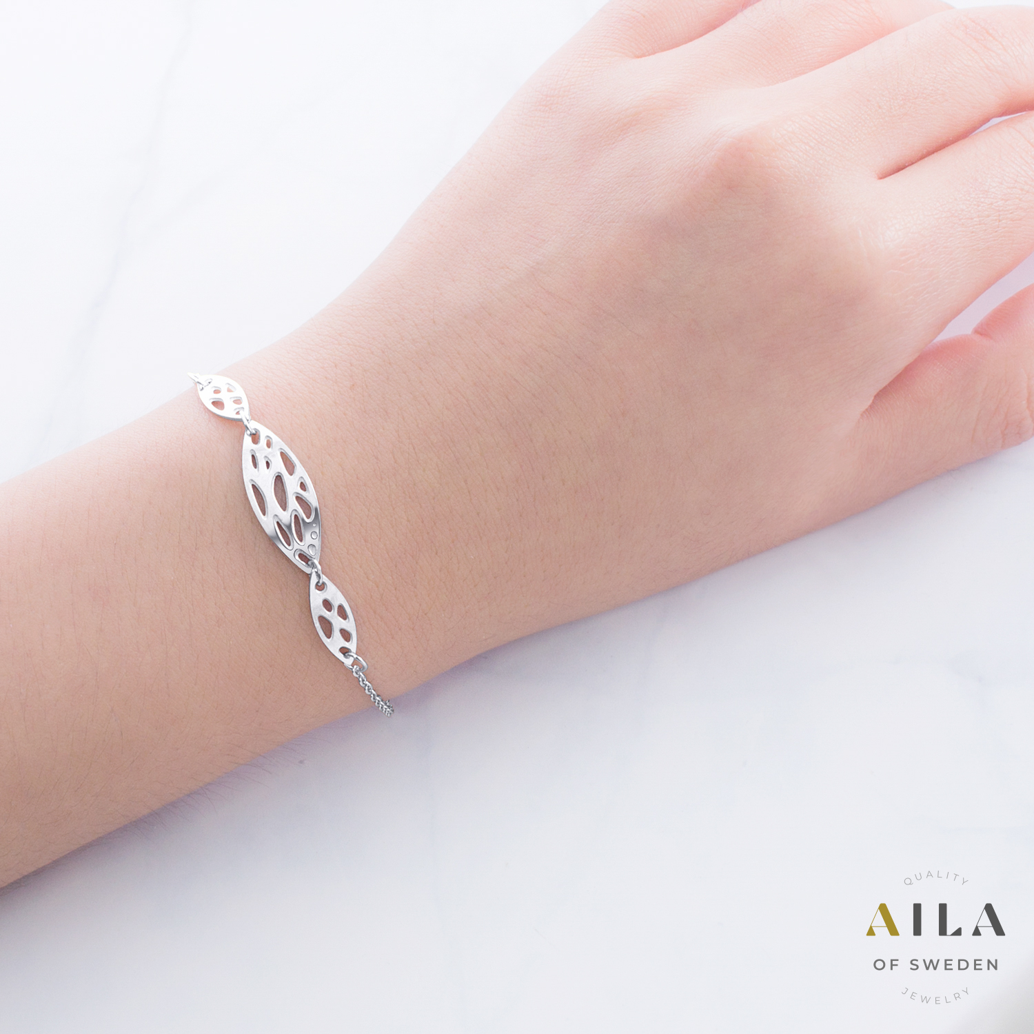 Nätt, justerbart armband med abstrakta detaljer. Längd 17 + 2 cm och 18 + 4 cm.